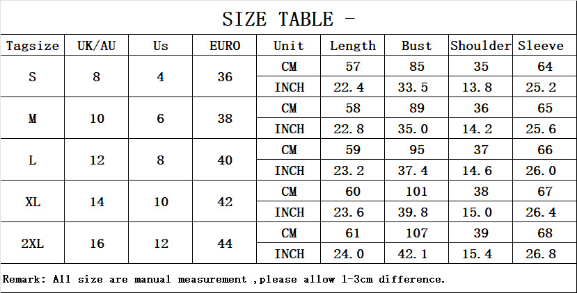 1. Asian sizes are 1 to 2 sizes smaller than European and American people. Choose the larger size if your size between two sizes. Please allow 2-3cm differences due to manual measurement. 2. Please check the size chart carefully before you buy the item, if you don't know how to choose size, please contact our customer service. 3.As you know, the different computers display colors differently, the color of the actual item may vary slightly from the following images.